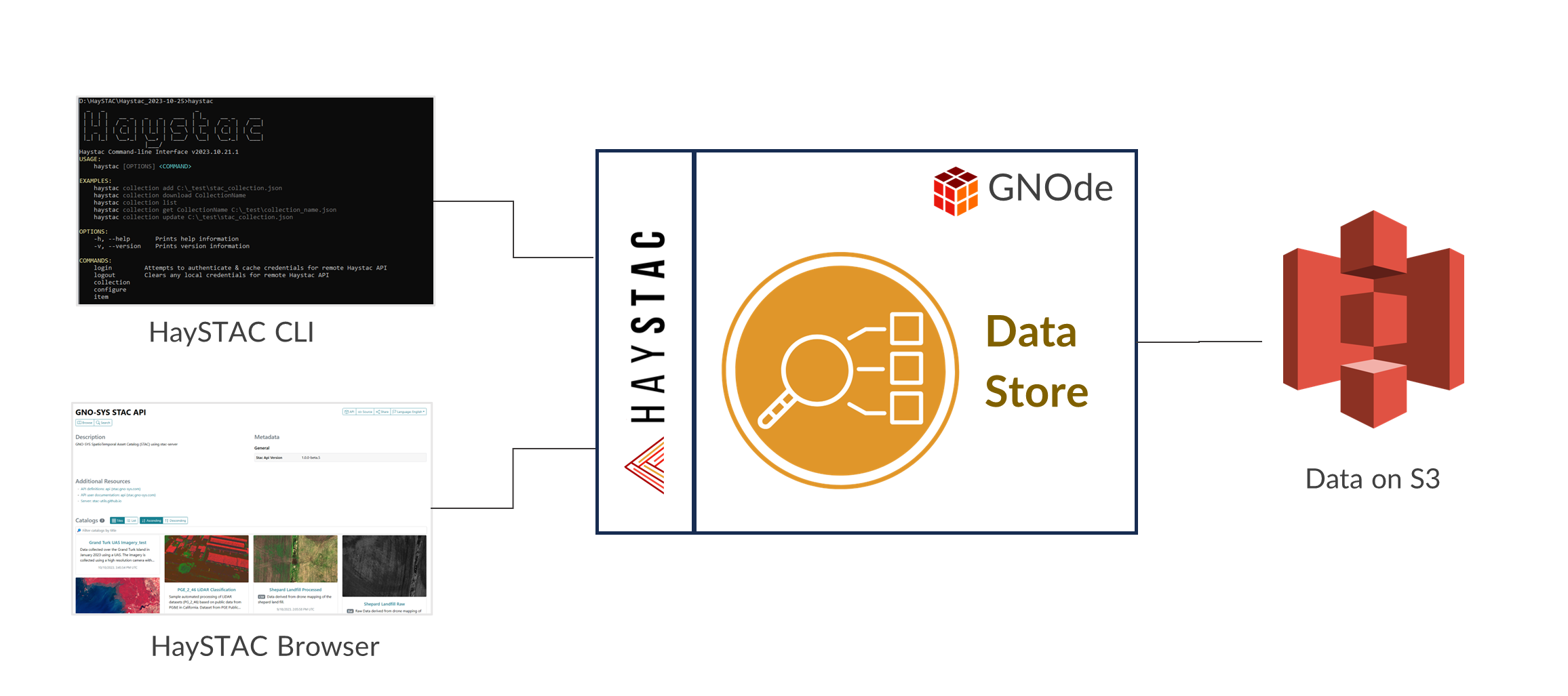 HaySTAC is a compliant, standalone, scalable, and secure server for efficient geospatial data cataloging, discovery, and access, built on STAC principles. HaySTAC is part of the GNOde DataStore and is available to access, download, sync, and view datasets. HaySTAC has two main user components:
